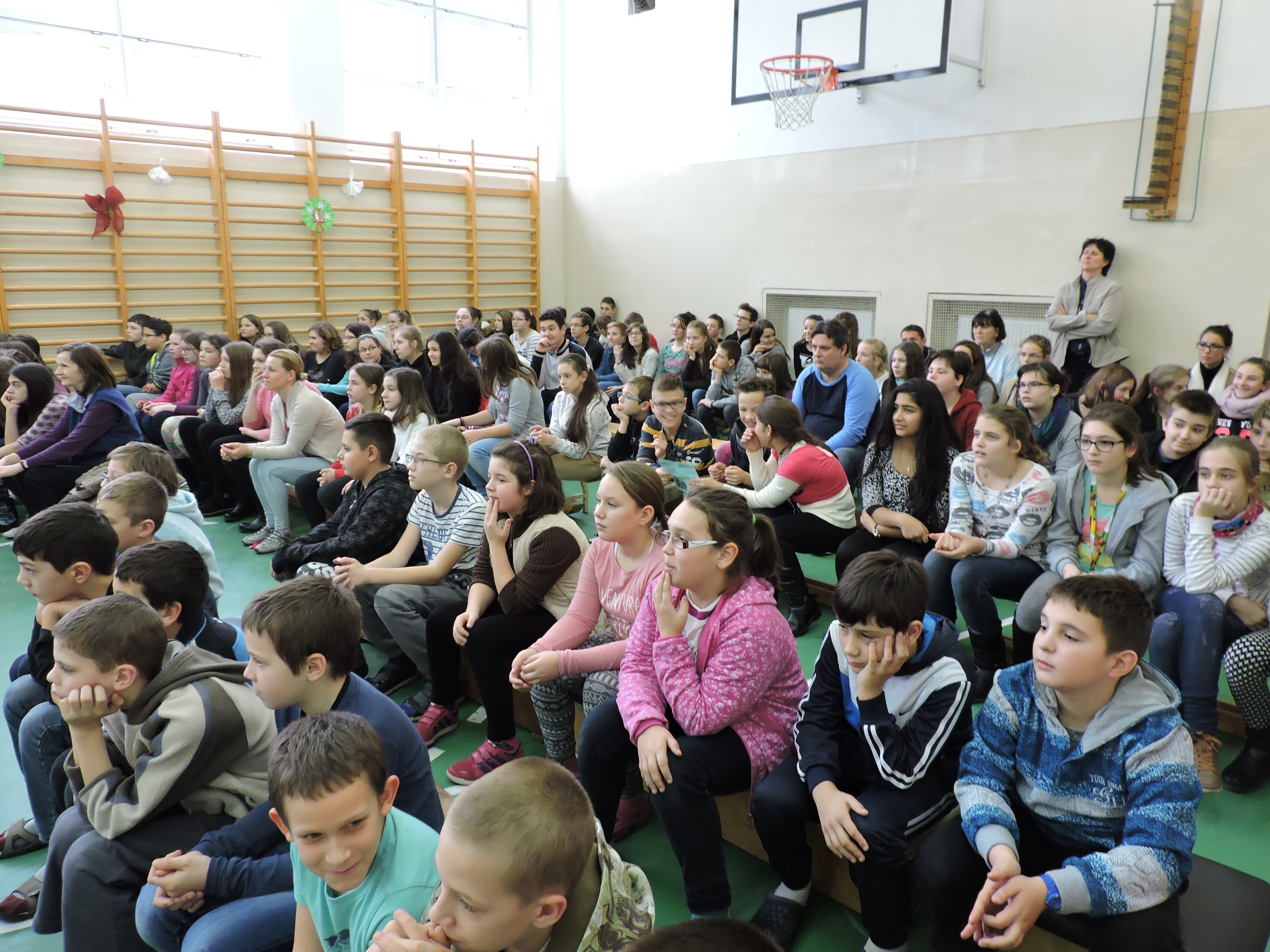 Délután Szalai Gergő, a Kankalin Táncegyüttes táncosa hívta táncba az egész alsó évfolyamot, akik örömmel ropták végig a délutánt. Mindeközben a legnagyobbak zsinórlabda bajnokságon vettek részt játékosként vagy szurkolóként. A tét: az osztályok közötti rangsor volt ebben a sportágban.