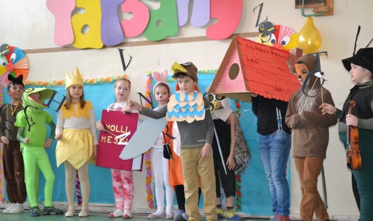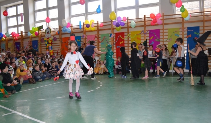 Február 12-én délután került sor az alsó tagozatosok farsangjára. Az iskola tornaterme idén is zsúfolásig megtelt a farsangi mulatságon. A hagyománynak megfelelően a gyerekek idén is csapatban, valamint egyéni kategóriában versengtek a díjakért. Rengeteg ötletes jelmezt láthatott a közönség.
