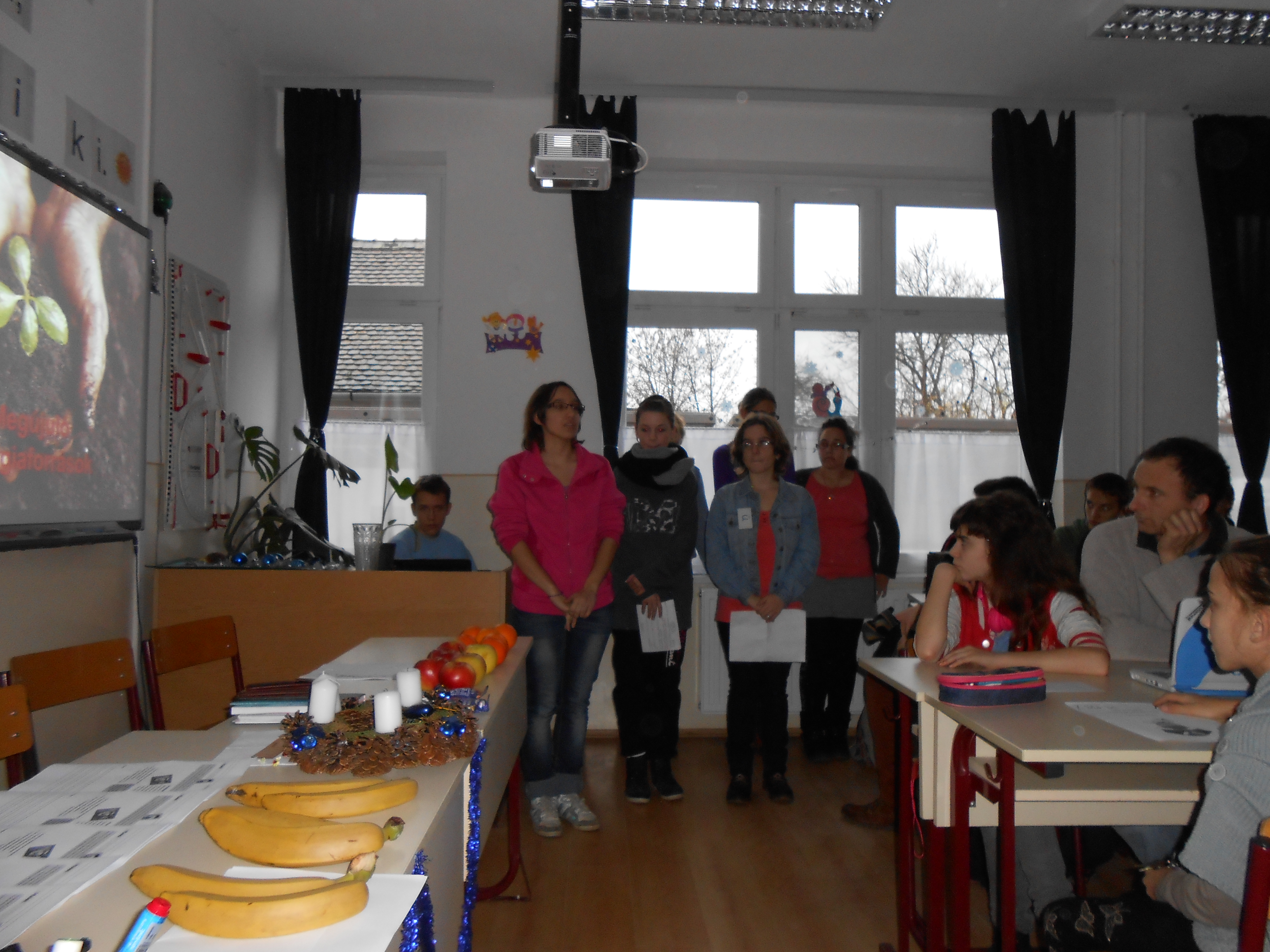 December 9-én délután fél háromtól kezdetét vette az ÖKO-Vetélkedő, melyen nyolc csapat vett részt a felső tagozatról. A lelkes csapatok szebbnél-szebb komposztáló ládikát hoztak magukkal a versenyre, mely egyben előzetes feladatuk is volt. A versenyt Farkas Zsuzsanna igazgatóasszony nyitotta meg.