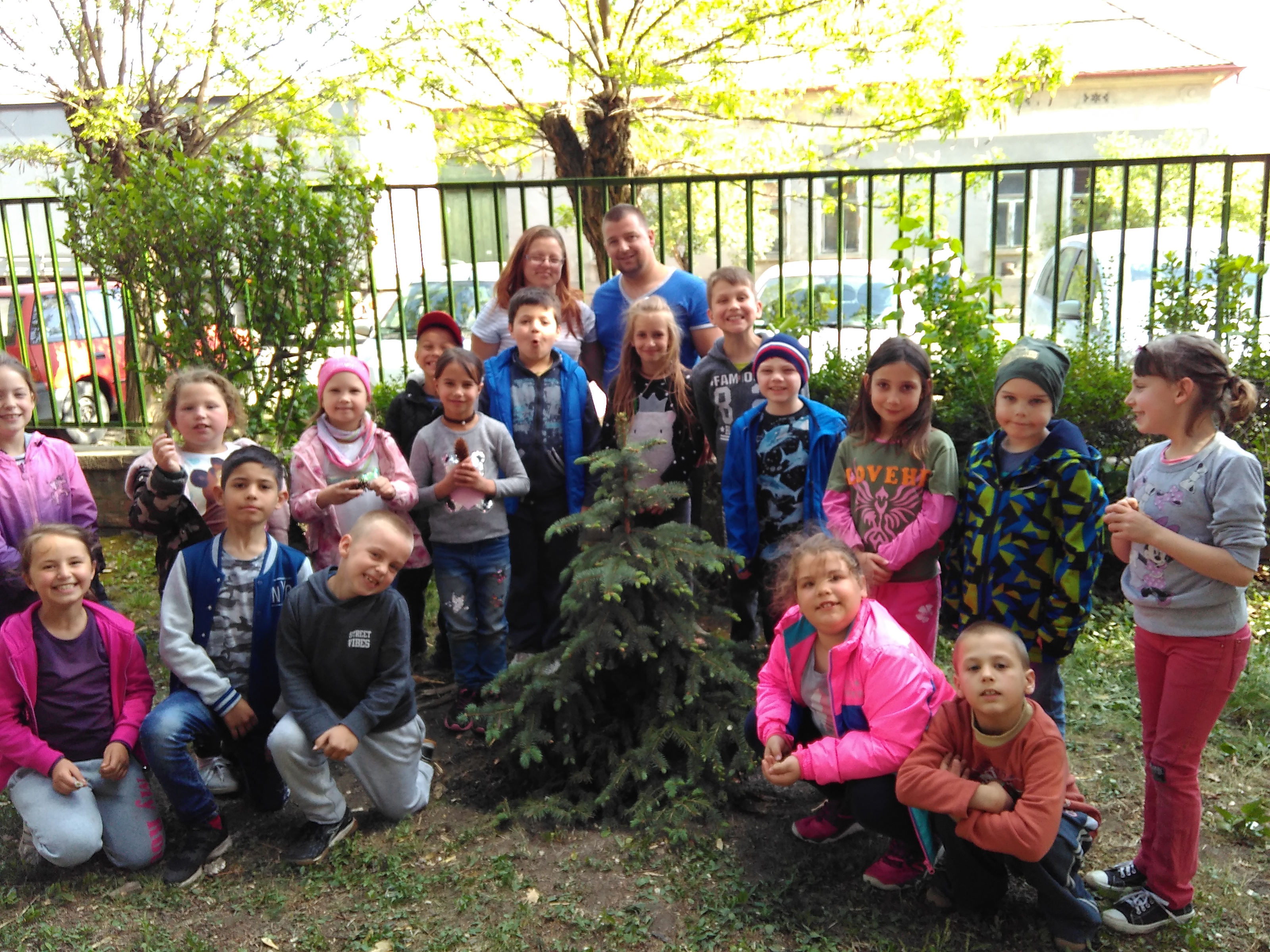Az 1.b osztály iskolánk régi hagyományához csatlakozva, egy szép kis fenyőfát ültetett el az előkertben.