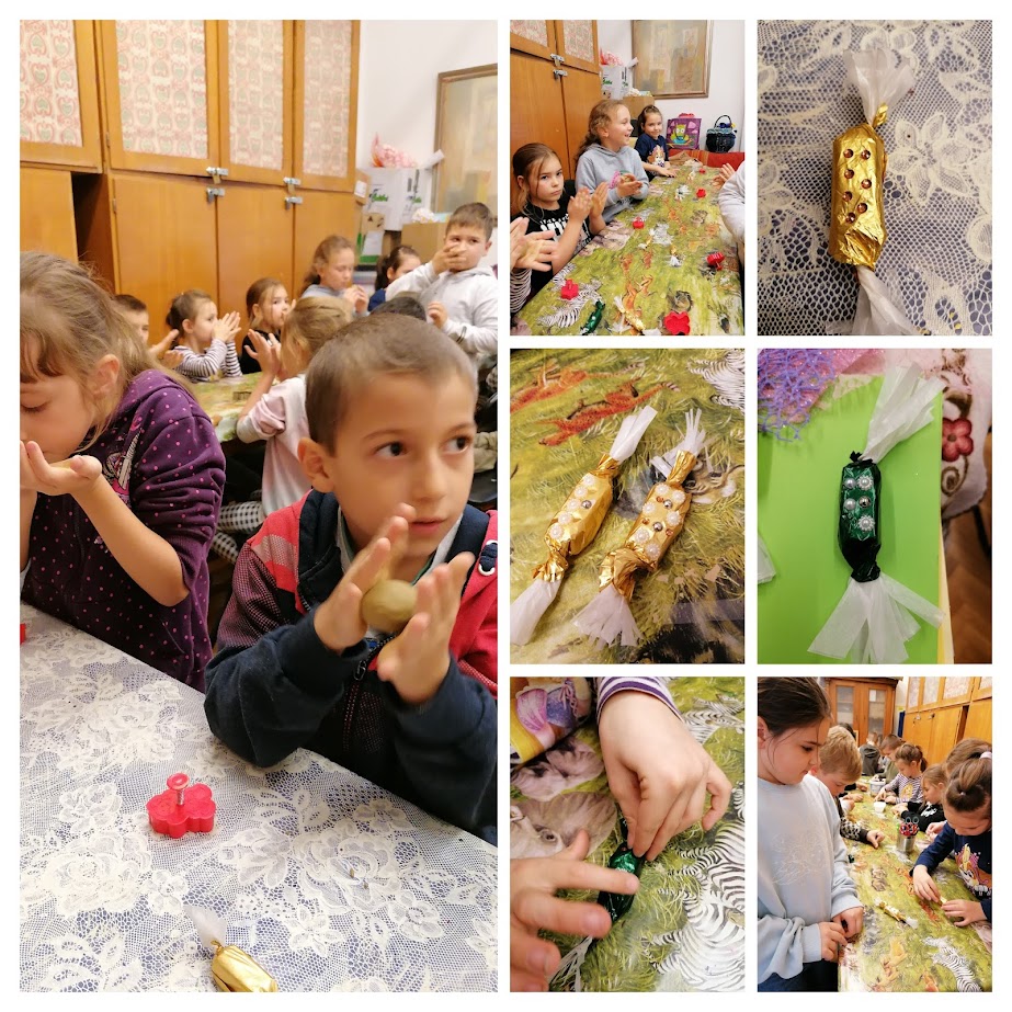 A 2.b osztály múzeumi foglalkozáson vett részt. Andi néni gondoskodott az adventi hangulatról. Szaloncukrot csomagoltunk és agyagból karácsonyfadíszt is készítettünk.