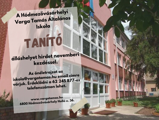 Szeretettel köszöntjük Önt a Hódmezővásárhelyi Varga Tamás Általános Iskola honlapján.