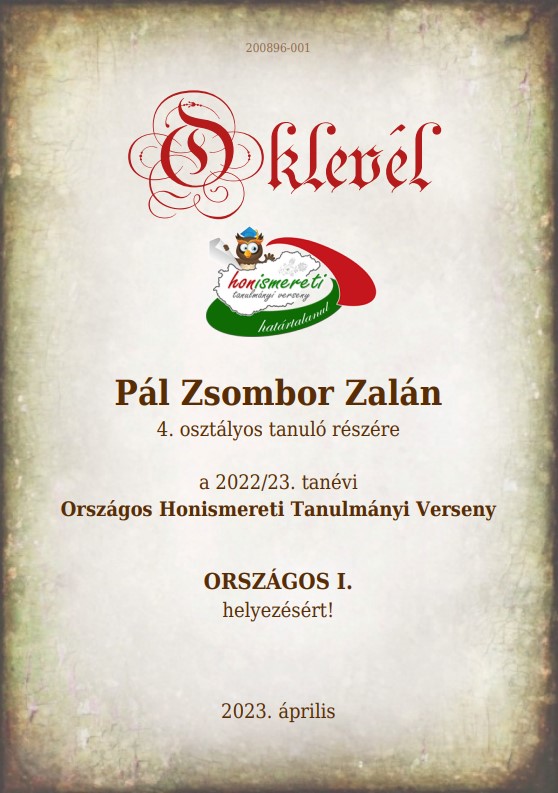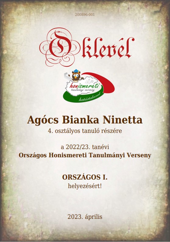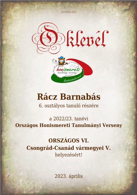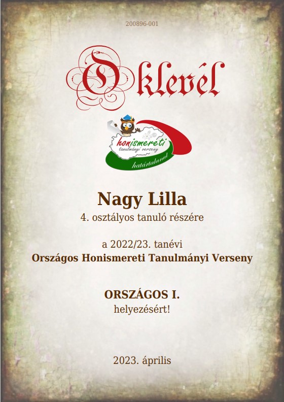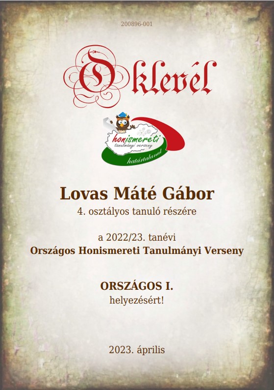 Az Országos Honismereti Tanulmányi Versenyen iskolánk tanulói a legszebb eredménnyel szerepeltek.