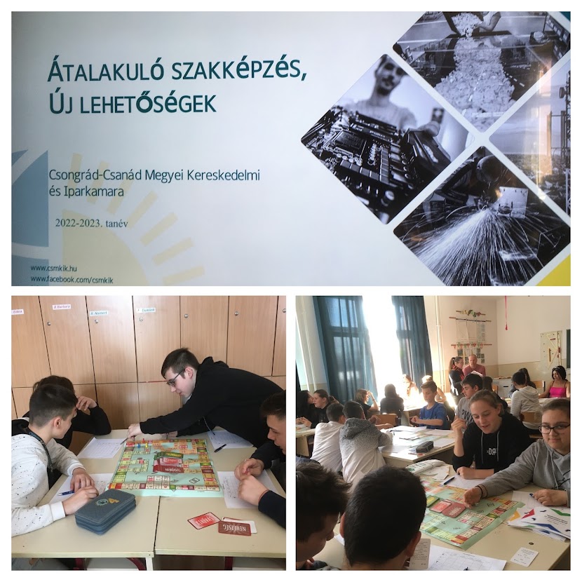 A második órában pedig "Az én utam" pályaorientációs társasjátékot próbálták ki a hetedikesek, azaz interaktív módon ismerkedtek a karrierutak alternatíváival.