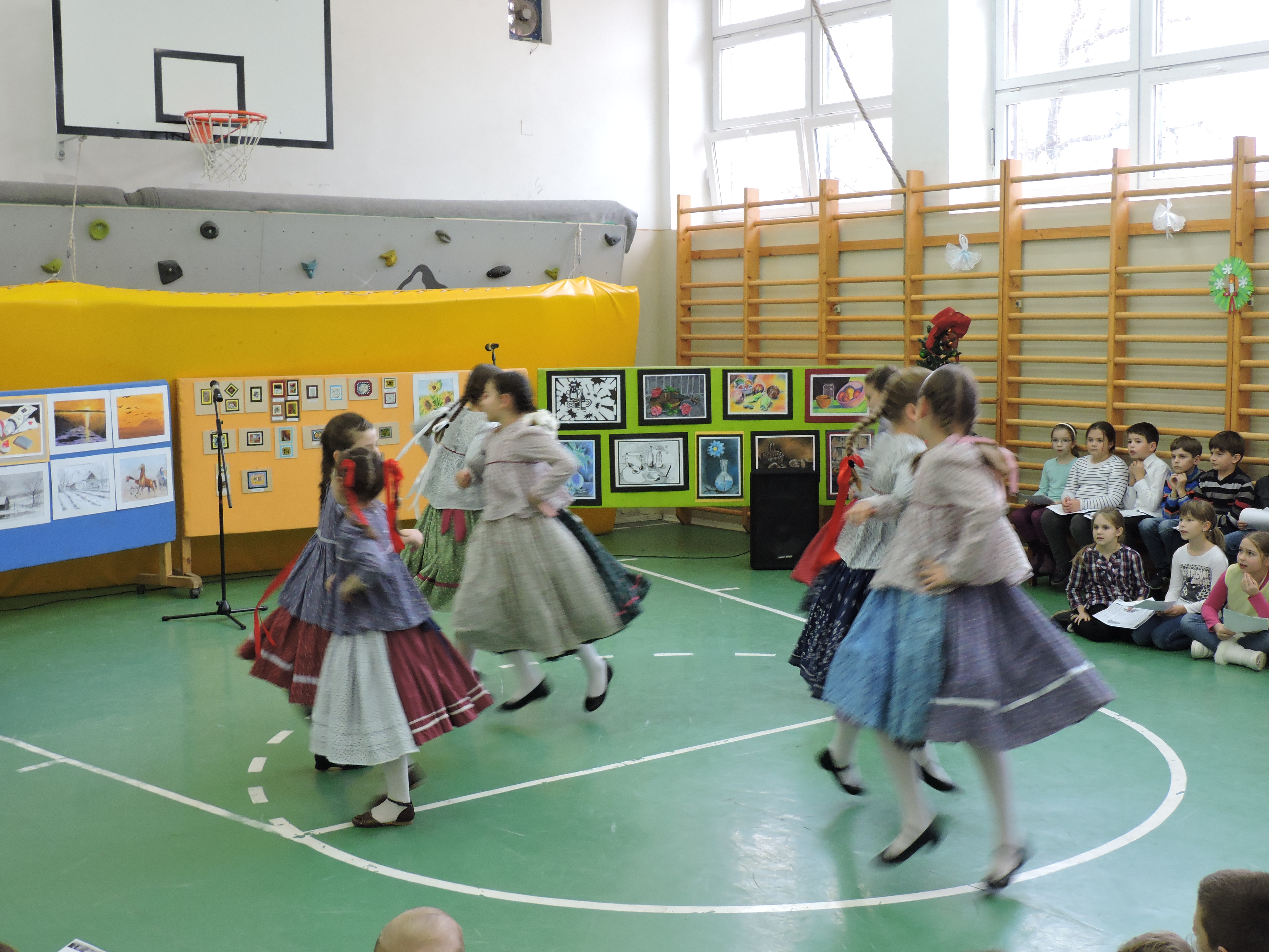 Délután Szalai Gergő, a Kankalin Táncegyüttes táncosa hívta táncba az egész alsó évfolyamot, akik örömmel ropták végig a délutánt. Mindeközben a legnagyobbak zsinórlabda bajnokságon vettek részt játékosként vagy szurkolóként. A tét: az osztályok közötti rangsor volt ebben a sportágban.