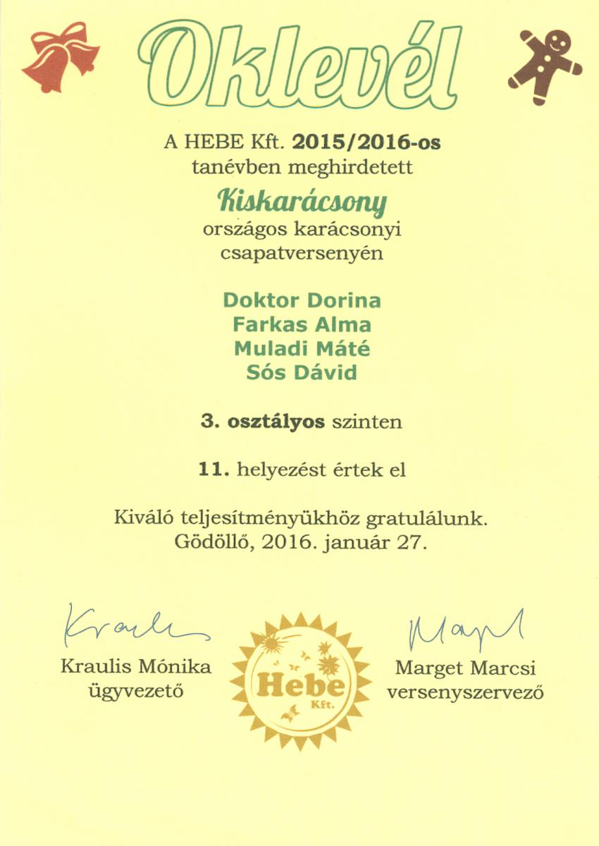 2016.02.16. Kiskarácsony országos karácsonyi csapatverseny