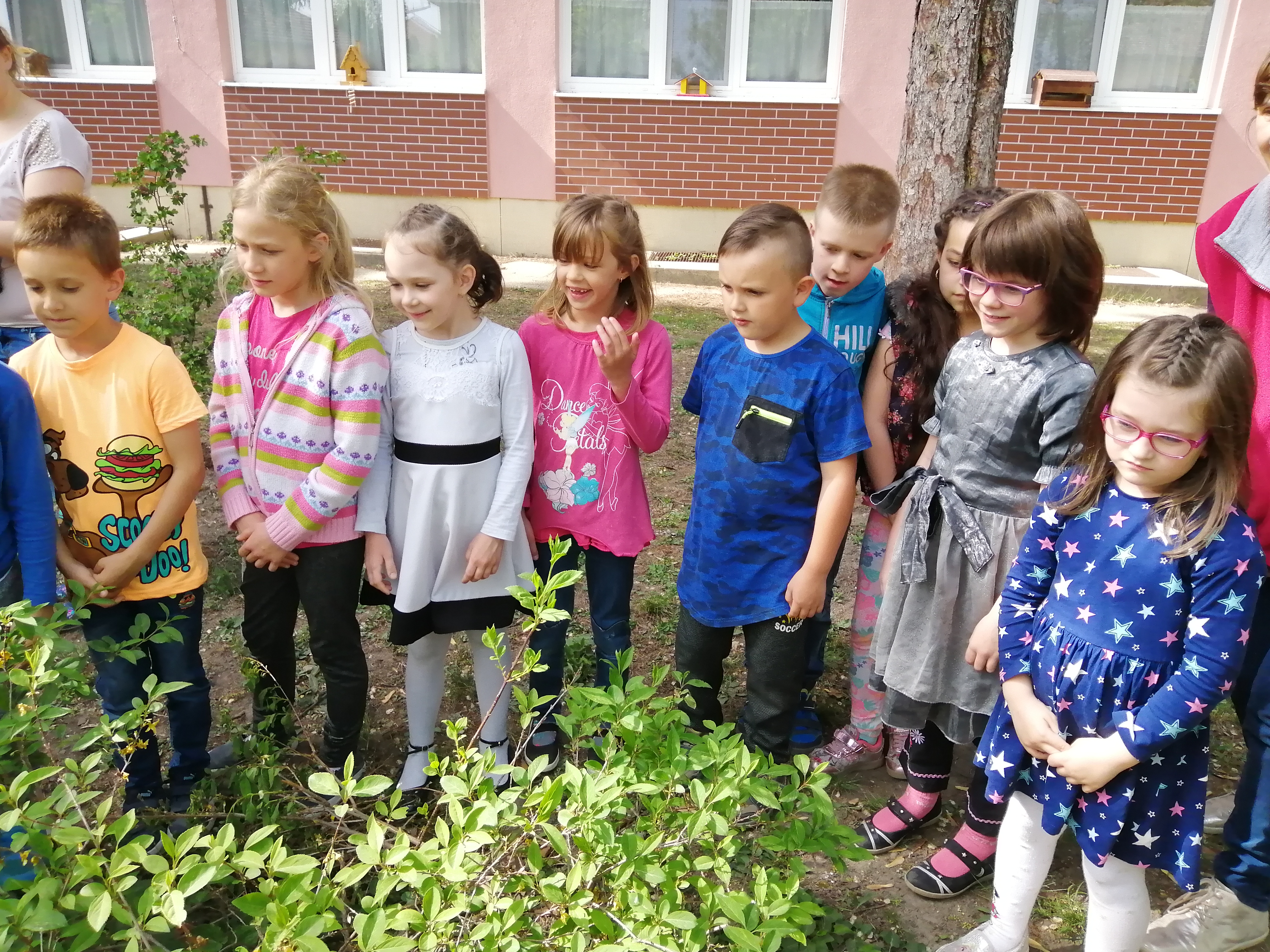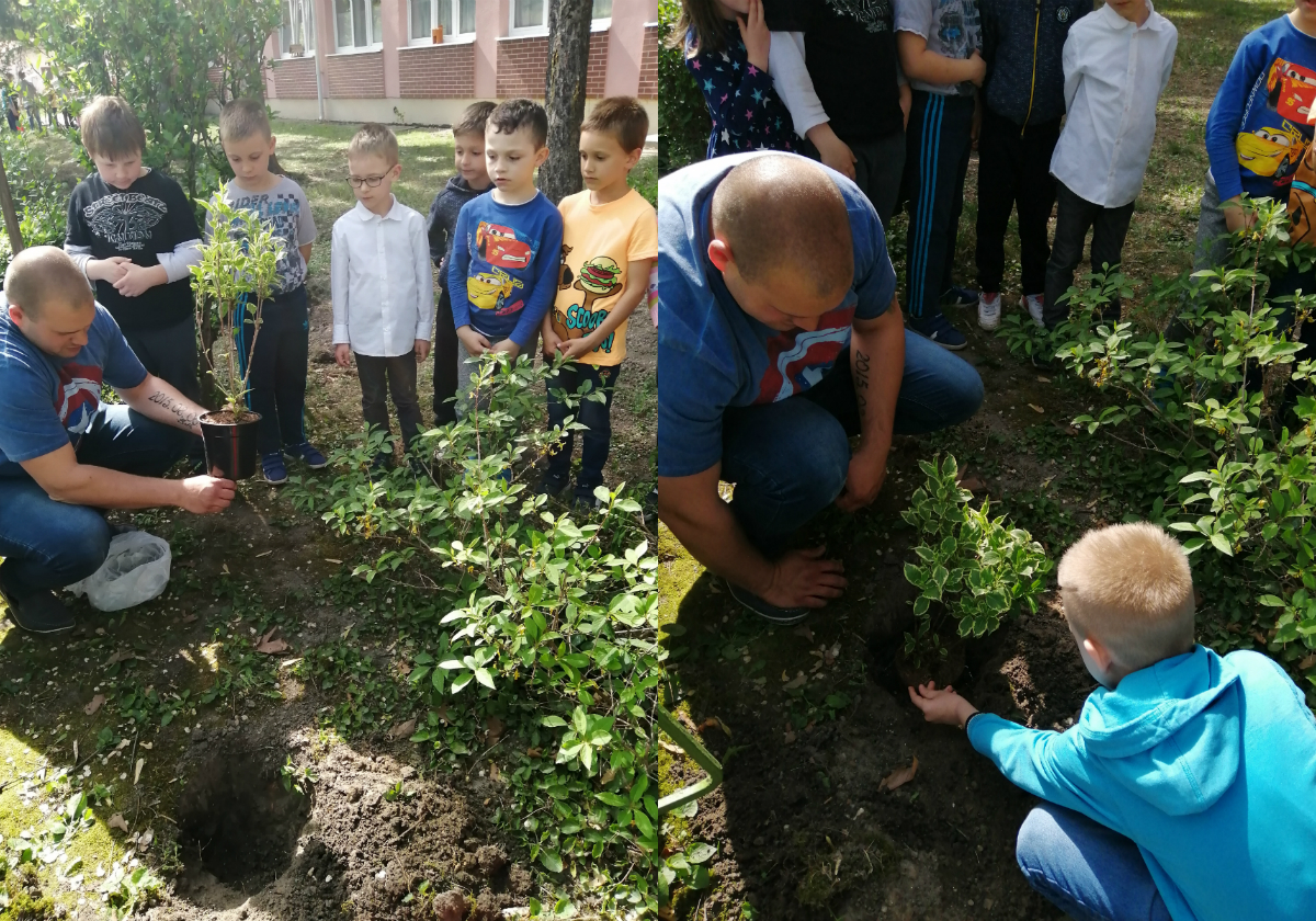 Az idei tanévben az 1.a osztály - követve a hagyományt - egy szép rózsabokrot ültetett el az előkertben.
