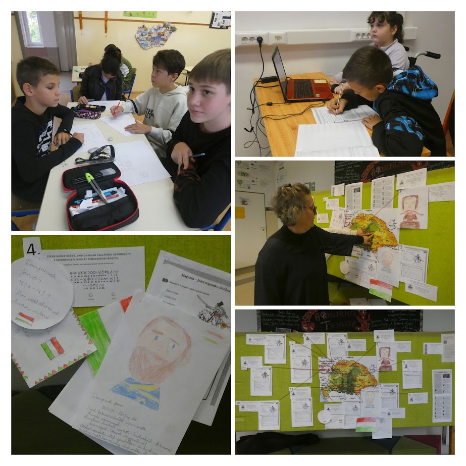 Október 4-én emlékeztünk felsőben az aradi hősökre. Az eső miatt a hagyományos játszótéri akadályverseny elmaradt,így az osztályok a termeikben oldották meg a projektfeladatokat. Ennek eredményeként készült el egy vértanúkról szóló emlékfal a paravánra.