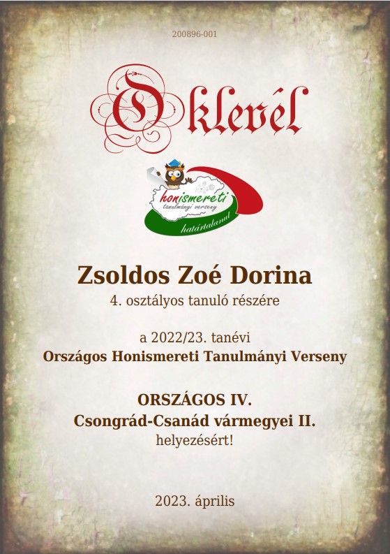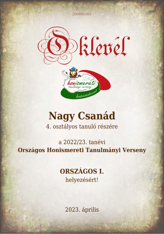 Az Országos Honismereti Tanulmányi Versenyen iskolánk tanulói a legszebb eredménnyel szerepeltek.
